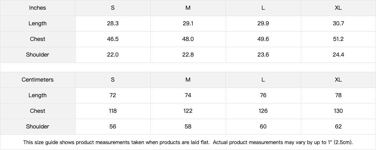 | 2XL | 32 | 81.3 | 26 | 66 |